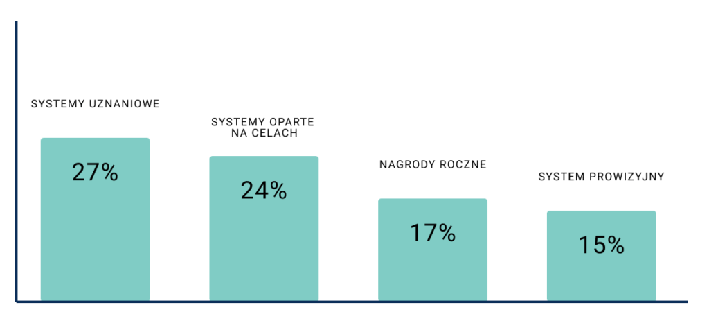 Badania Sedlak & Sedlak z 2021 roku przeprowadzone na próbie 75 przedstawicieli firm z obszaru HR pokazało, że w 27% firm obowiązują systemy premiowe uznaniowe, w 24% system oparty na celach, a w 17% nagrody roczne. Z kolei w 15% obowiązuje system prowizyjny, a w 11% premiowany jest udział w projektach.